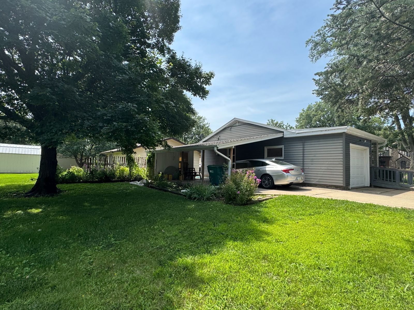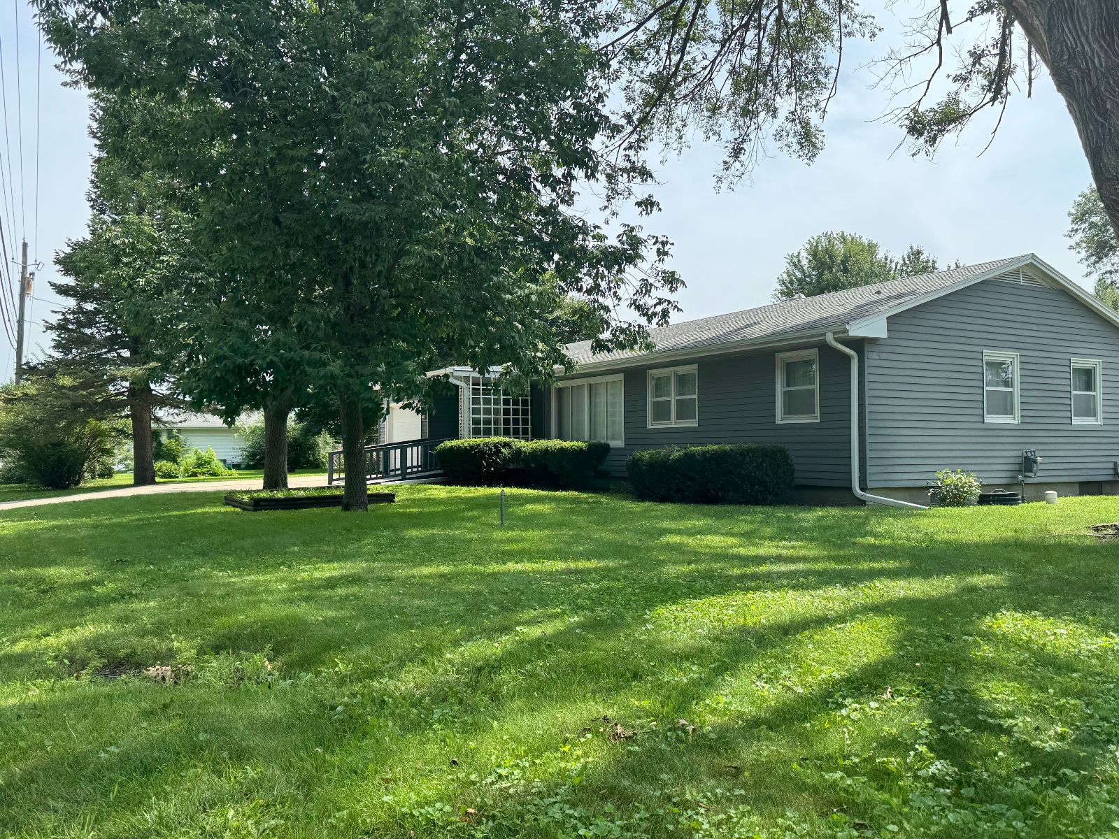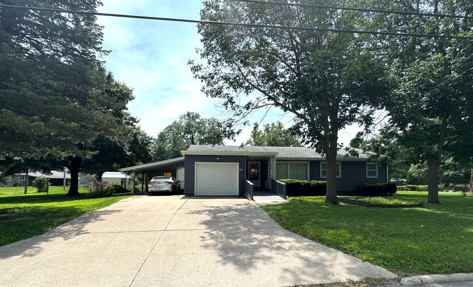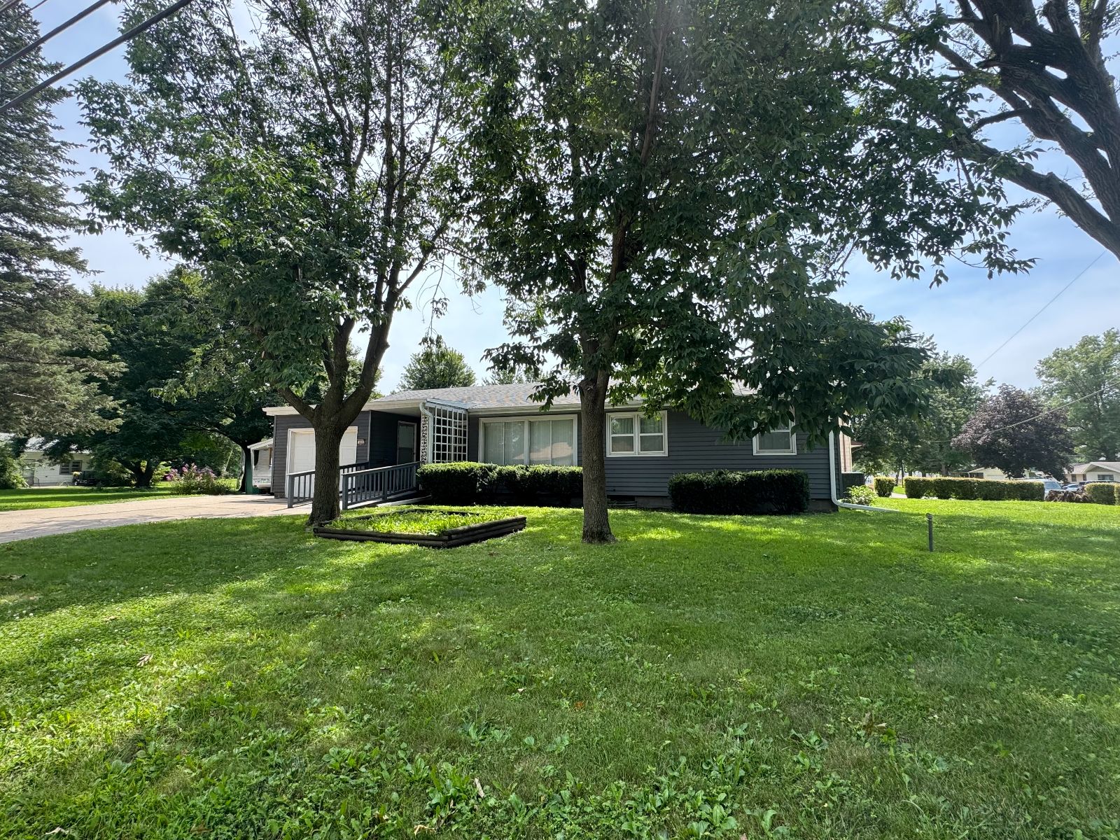 This handsome Ranch Style home is nestled in on a corner lot with mature landscaping, in an established neighborhood and easy access to Creston Community Schools, SWCC & Creston Medical Complex. The Entry porch has walk-up ramp into Living Room with view to Dining Area and Kitchen. Custom Dining Rm built-in with shelving and Kitchen cabinetry with broom closet allows for plenty of storage and display. The Main Level 3/4 Bath has handicap accessible/equipped low threshold walk-in shower and Storage cabinet. Three Bedrooms on main level. All flooring new on main level (2025). Kitchen access to Garage and open Carport with storage. Lower level is open – with a Kitchen area and lots of room for entertaining or storage. Enclosed area for office or non-conforming bedroom. There is a 3/4 Bathroom on lower level with Laundry area – and upper Laundry located in Bedroom Closet. Lower level also has area for Tornado Shelter. This RANCH STYLE home is move-in ready and will not be on the market long….. call today!!