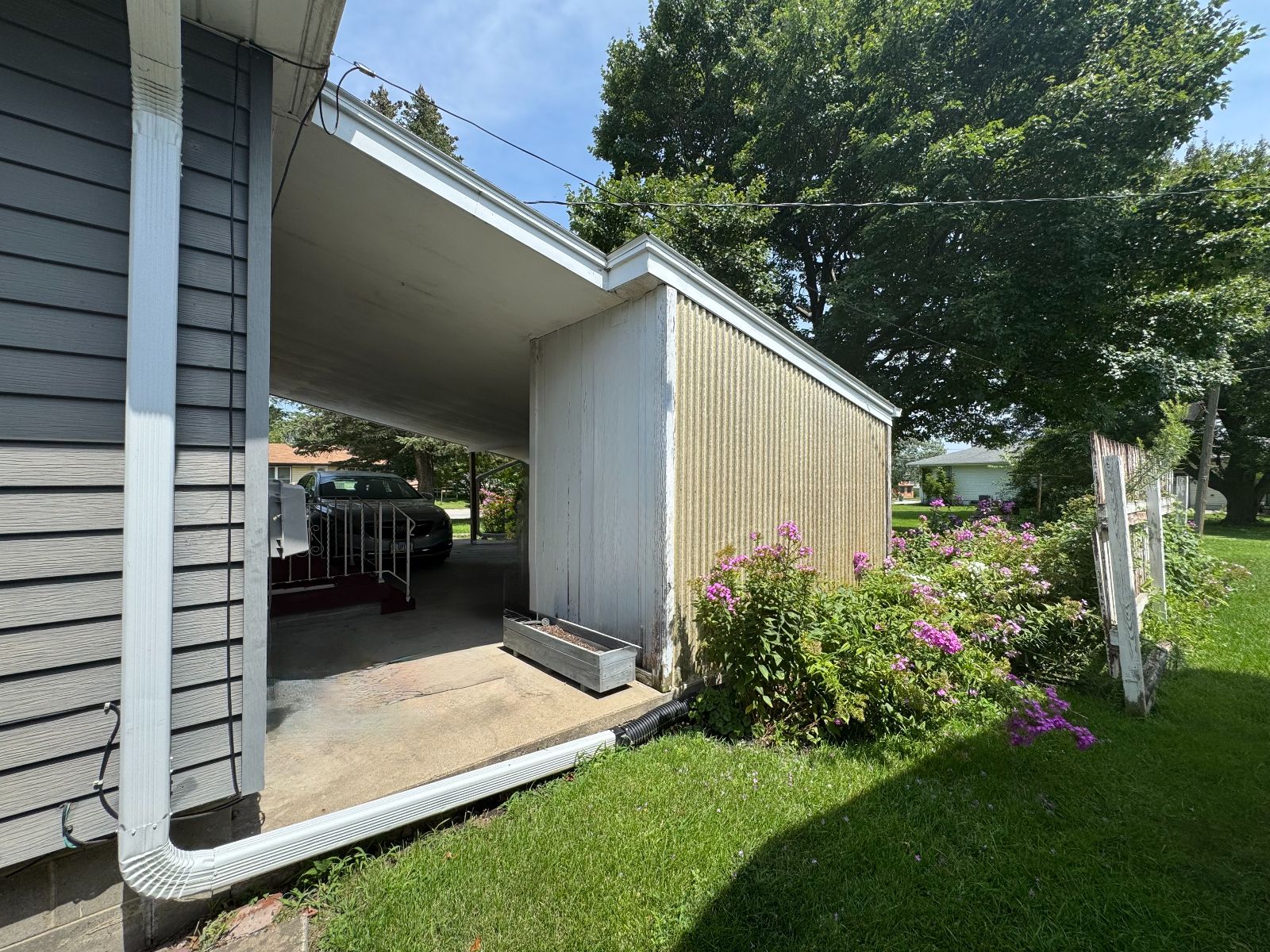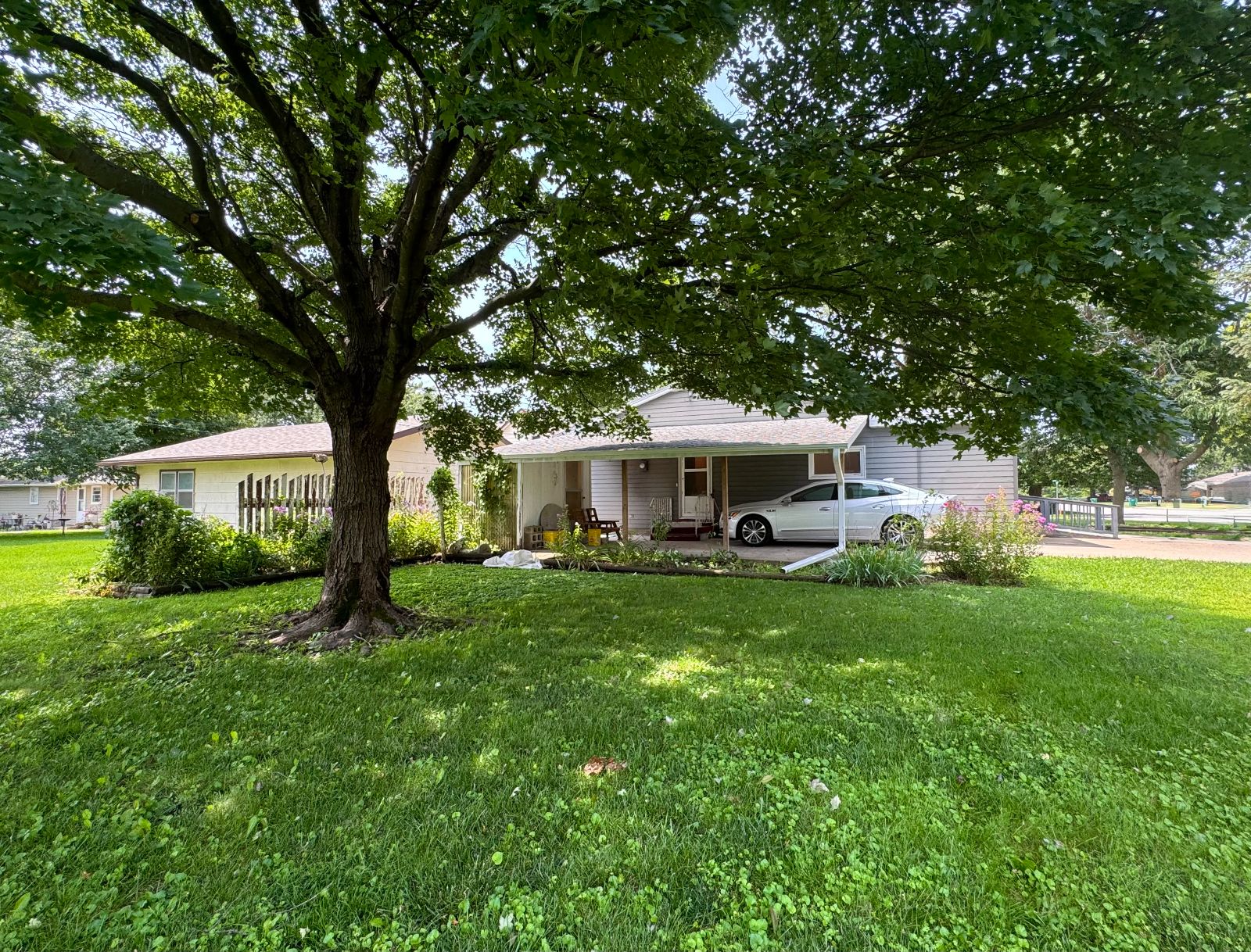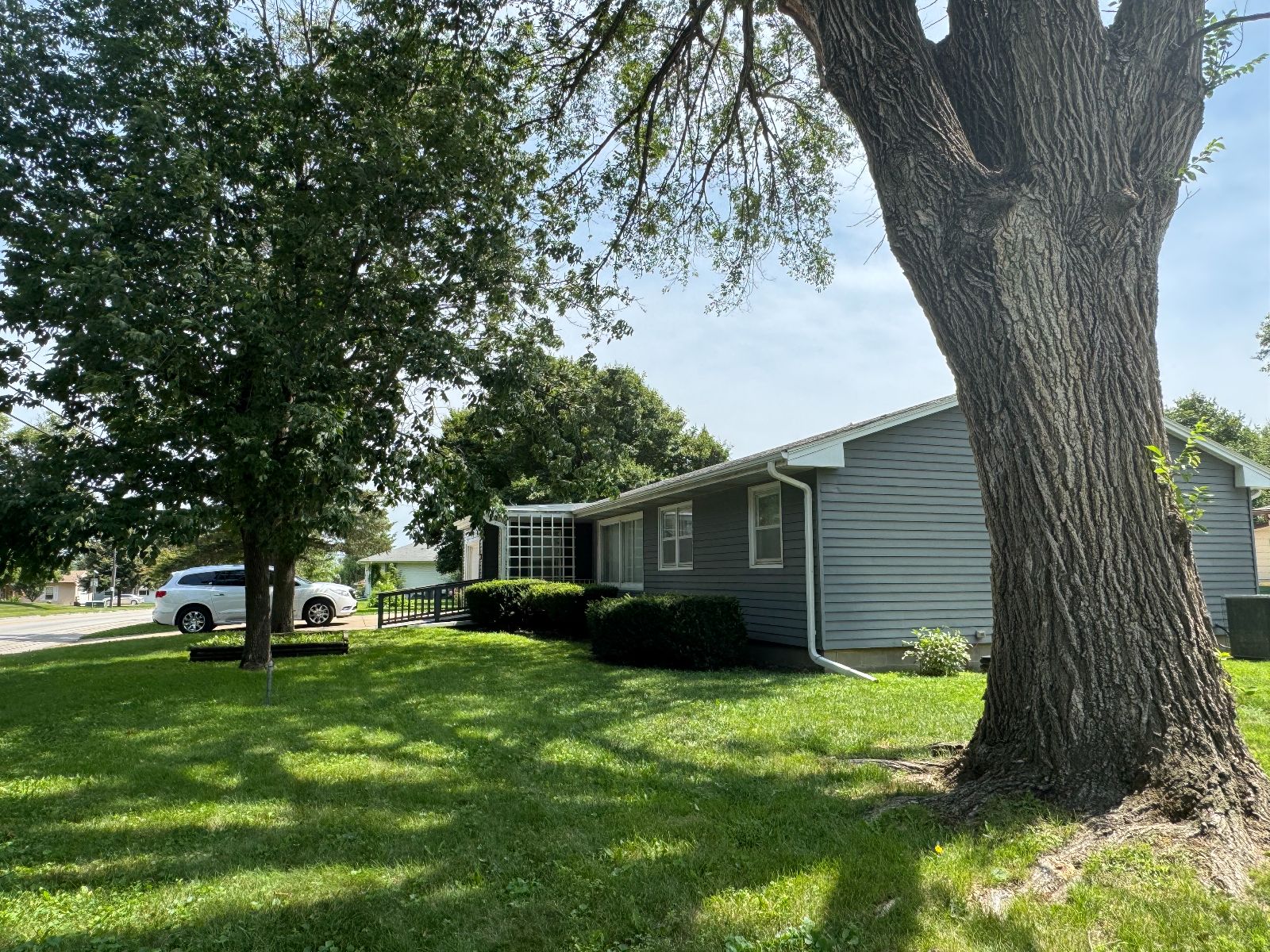 This handsome Ranch Style home is nestled in on a corner lot with mature landscaping, in an established neighborhood and easy access to Creston Community Schools, SWCC & Creston Medical Complex. The Entry porch has walk-up ramp into Living Room with view to Dining Area and Kitchen. Custom Dining Rm built-in with shelving and Kitchen cabinetry with broom closet allows for plenty of storage and display. The Main Level 3/4 Bath has handicap accessible/equipped low threshold walk-in shower and Storage cabinet. Three Bedrooms on main level. All flooring new on main level (2025). Kitchen access to Garage and open Carport with storage. Lower level is open – with a Kitchen area and lots of room for entertaining or storage. Enclosed area for office or non-conforming bedroom. There is a 3/4 Bathroom on lower level with Laundry area – and upper Laundry located in Bedroom Closet. Lower level also has area for Tornado Shelter. This RANCH STYLE home is move-in ready and will not be on the market long….. call today!!