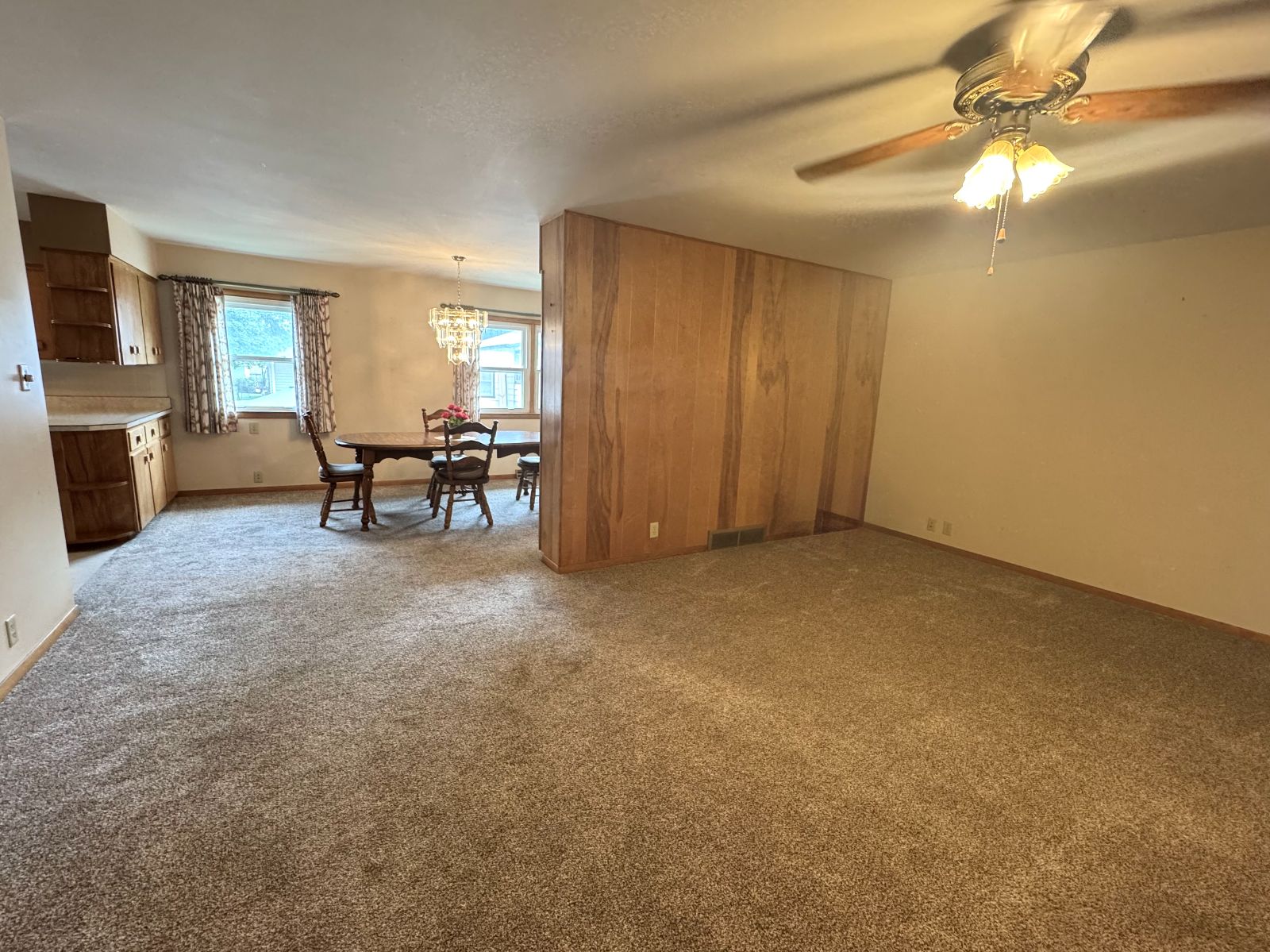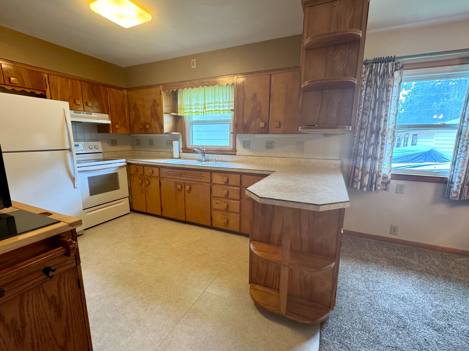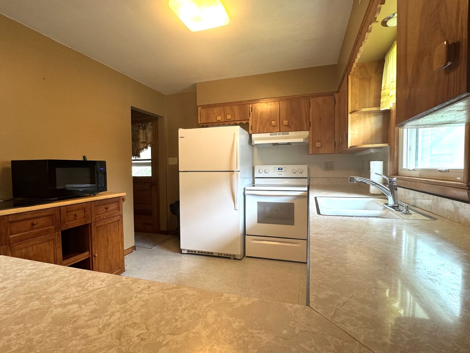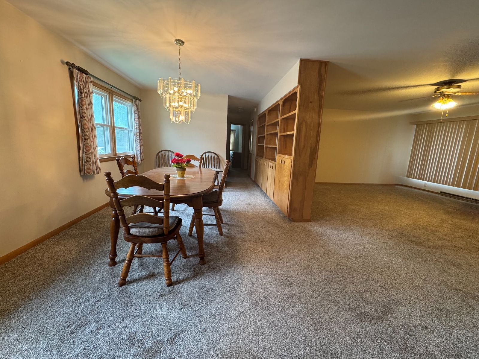 This handsome Ranch Style home is nestled in on a corner lot with mature landscaping, in an established neighborhood and easy access to Creston Community Schools, SWCC & Creston Medical Complex. The Entry porch has walk-up ramp into Living Room with view to Dining Area and Kitchen. Custom Dining Rm built-in with shelving and Kitchen cabinetry with broom closet allows for plenty of storage and display. The Main Level 3/4 Bath has handicap accessible/equipped low threshold walk-in shower and Storage cabinet. Three Bedrooms on main level. All flooring new on main level (2025). Kitchen access to Garage and open Carport with storage. Lower level is open – with a Kitchen area and lots of room for entertaining or storage. Enclosed area for office or non-conforming bedroom. There is a 3/4 Bathroom on lower level with Laundry area – and upper Laundry located in Bedroom Closet. Lower level also has area for Tornado Shelter. This RANCH STYLE home is move-in ready and will not be on the market long….. call today!!