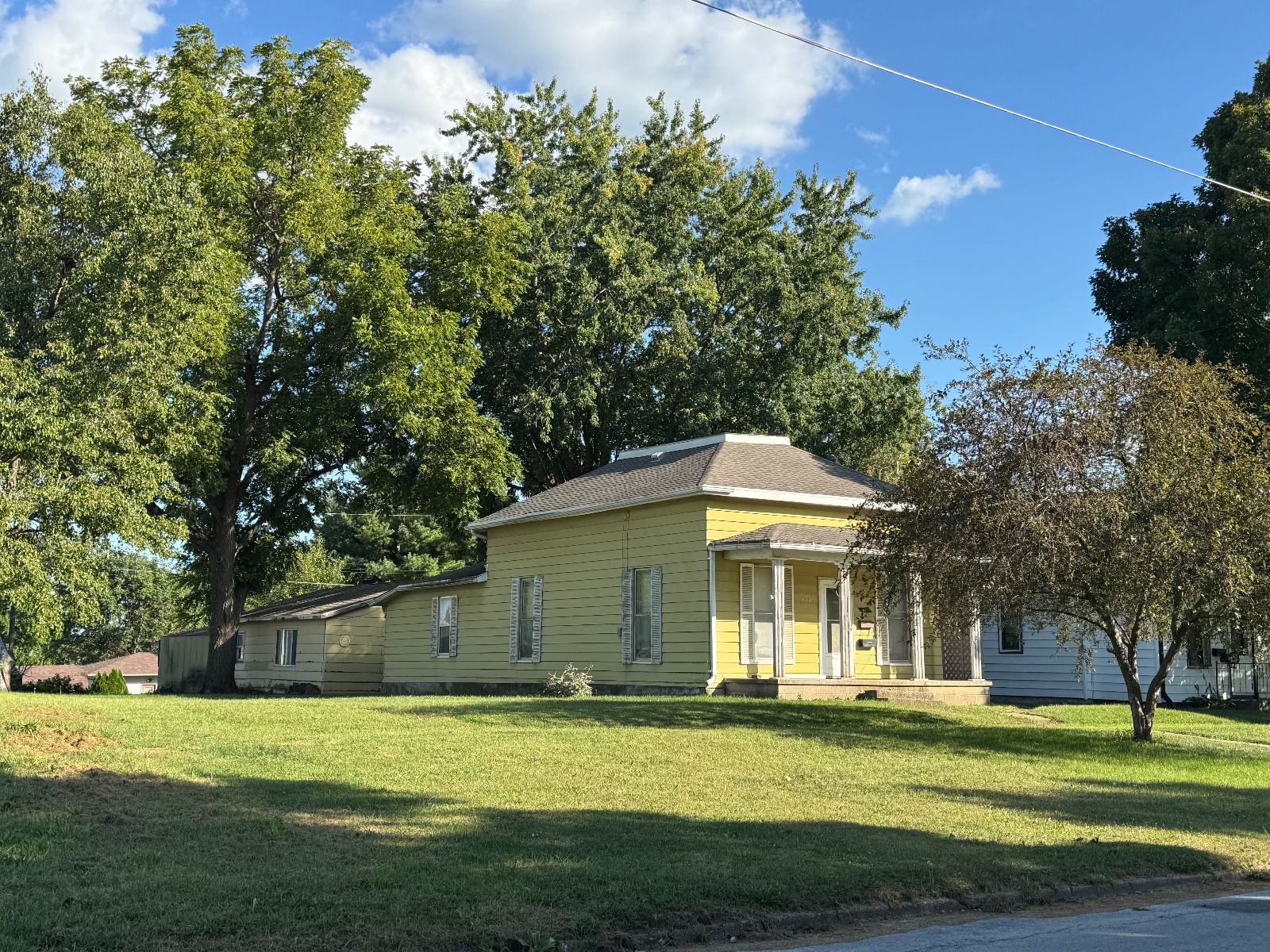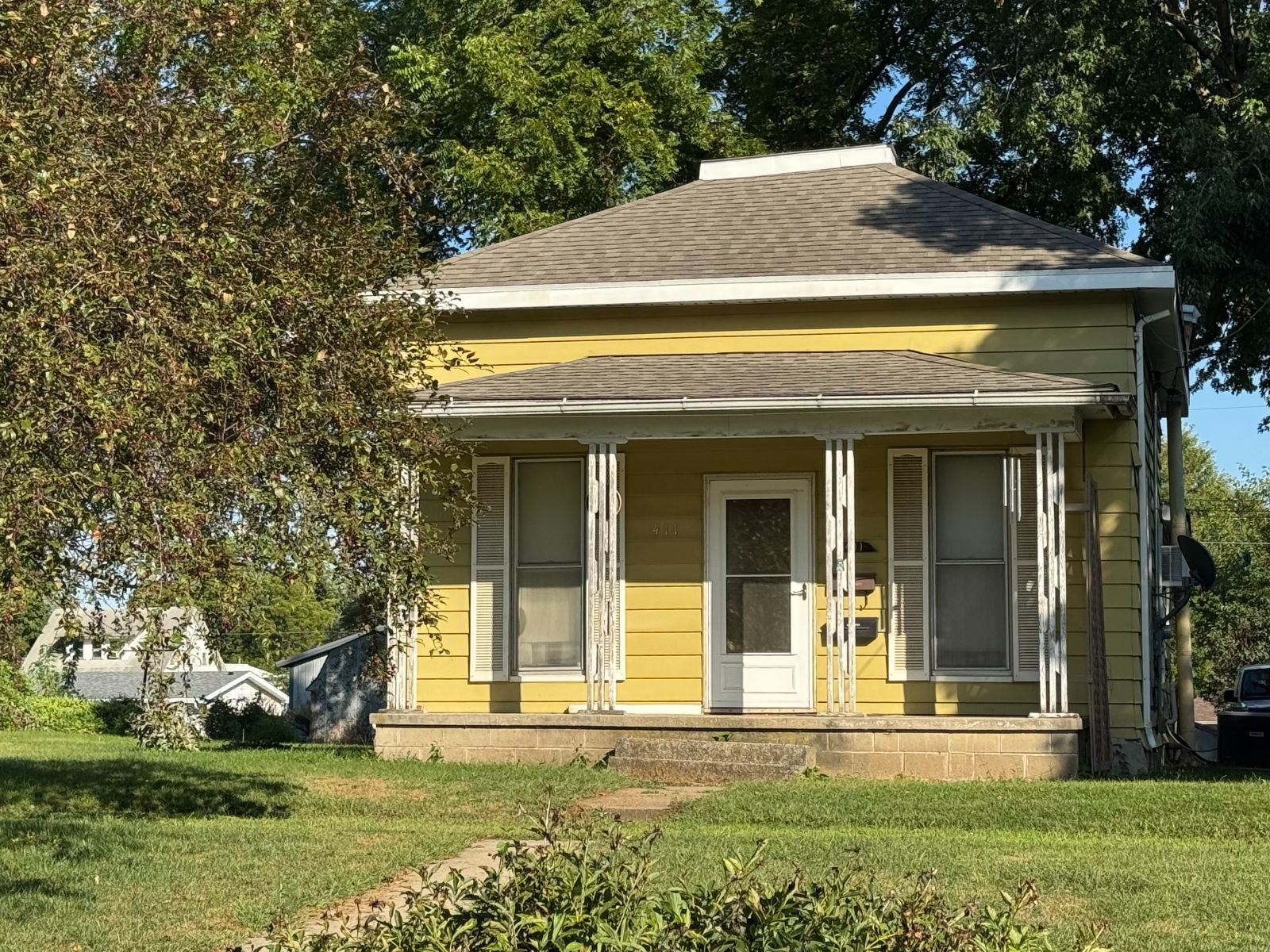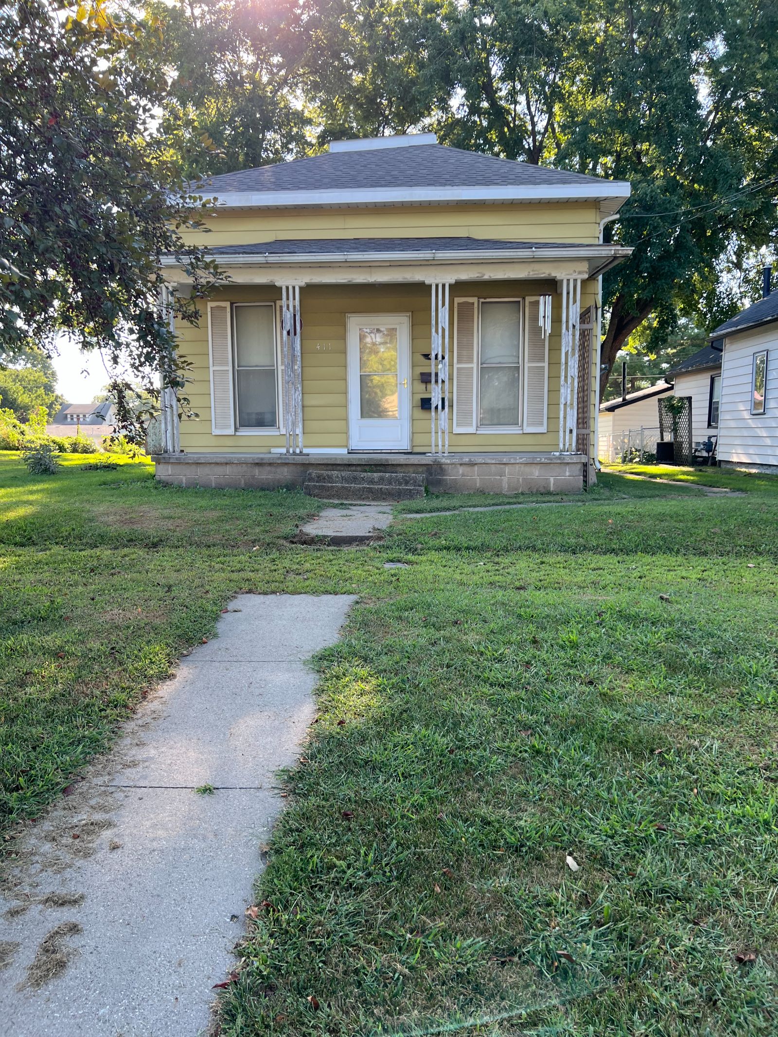This Ranch style two bedroom home has nice size Living/Dining Area and is open to Kitchen – making the space live ‘larger’! There is bar seating and eat-in Kitchen. Bathroom has walk-in shower, Laundry on main floor. An additional room/area has been added in the back that could be used as a small apartment. Detached two car garage with alley access and additional lot!