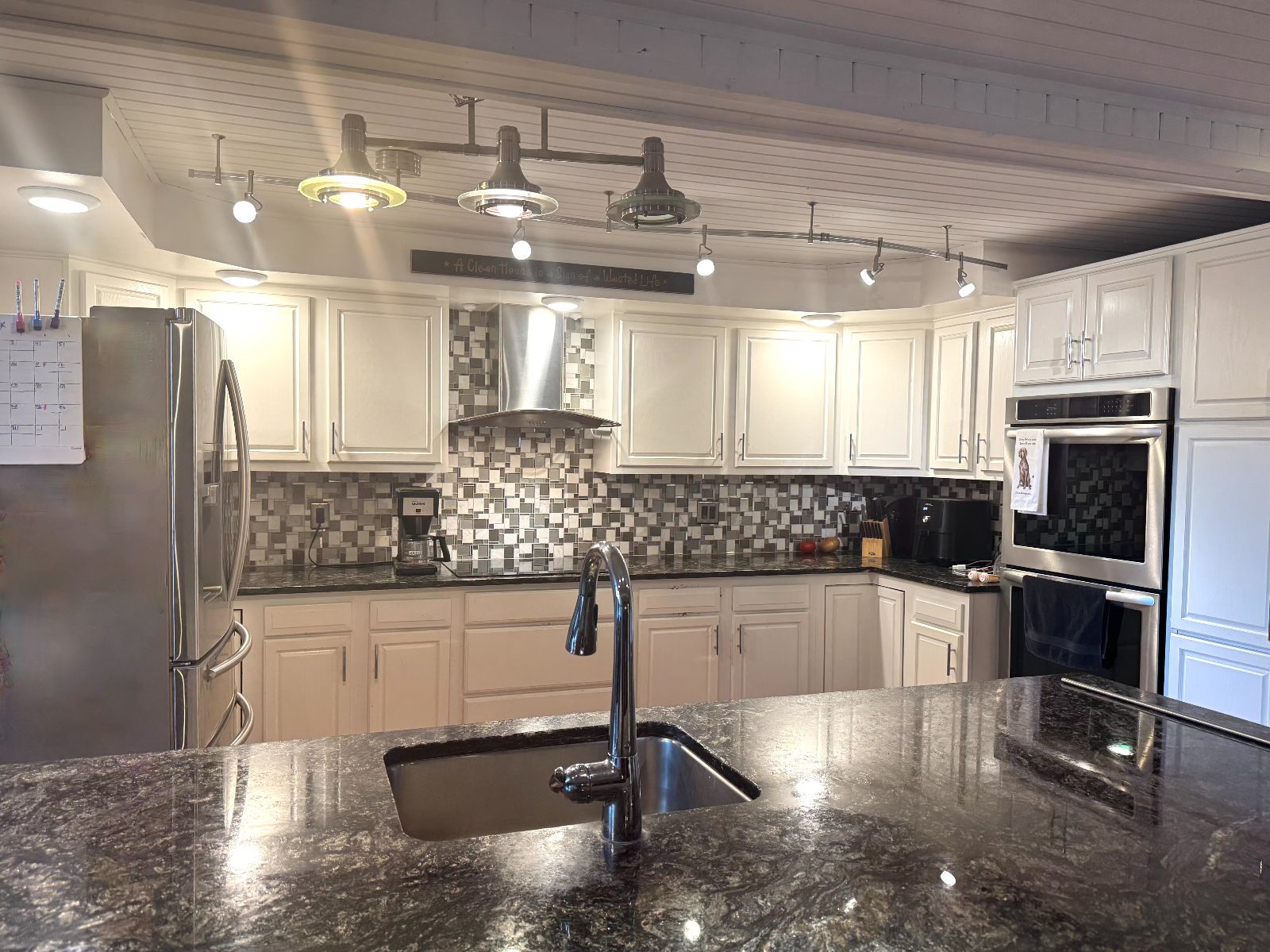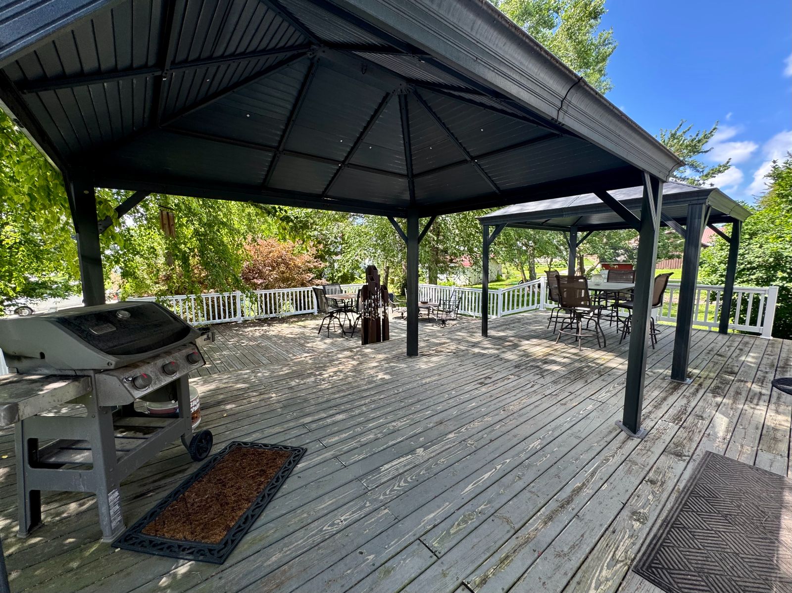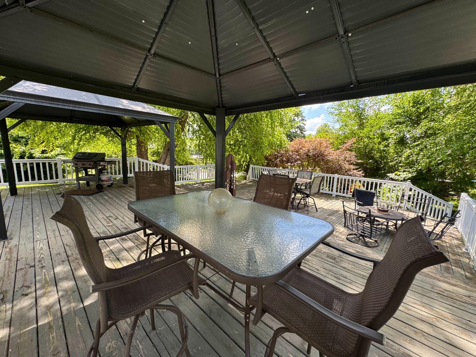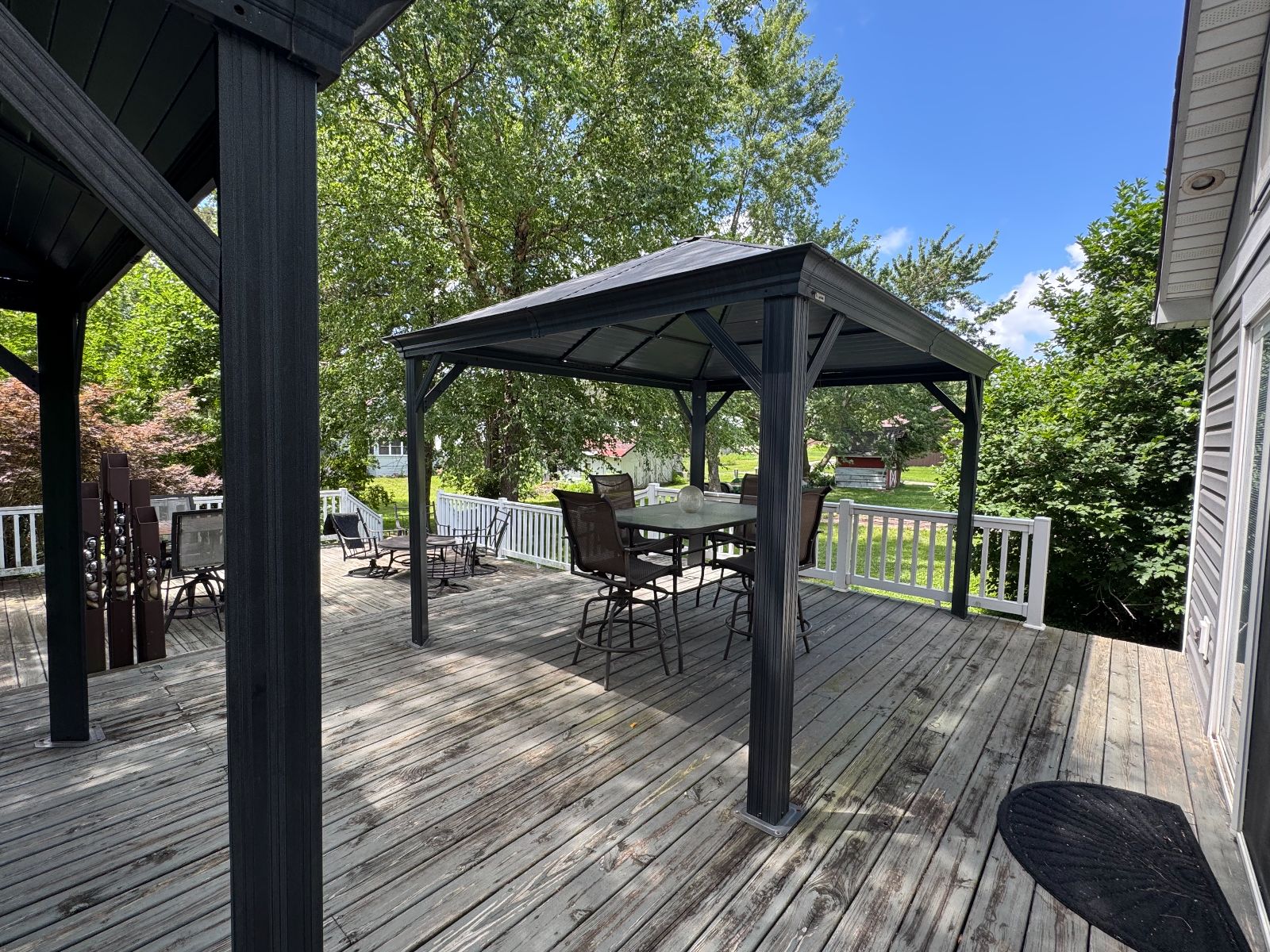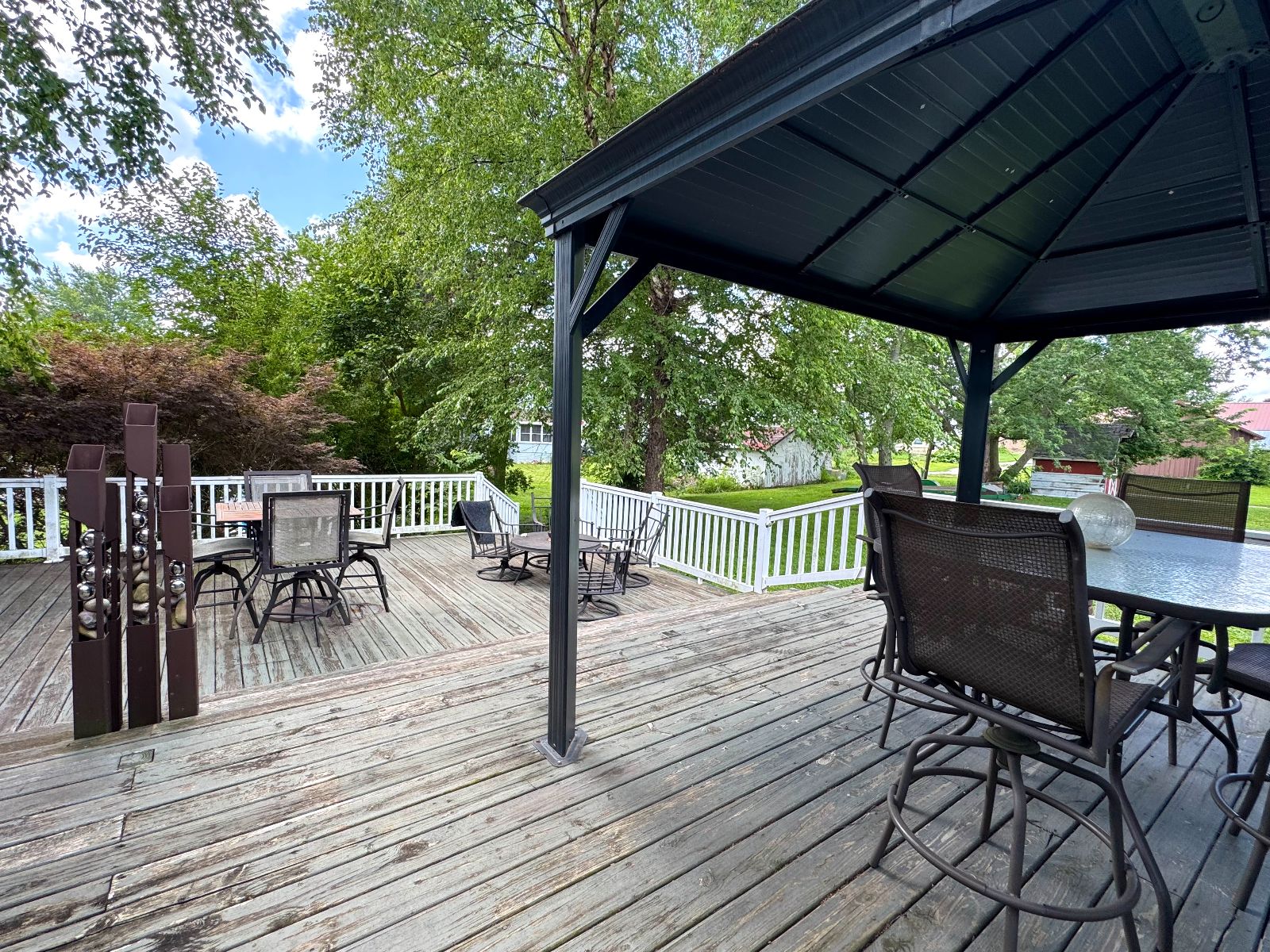 The custom designed Backyard Deck is PERFECT for enjoying this outdoor oasis! Imagine enjoying this beautiful area – covered for all weather & areas for each activity. The custom sculpture is staying for you to enjoy!