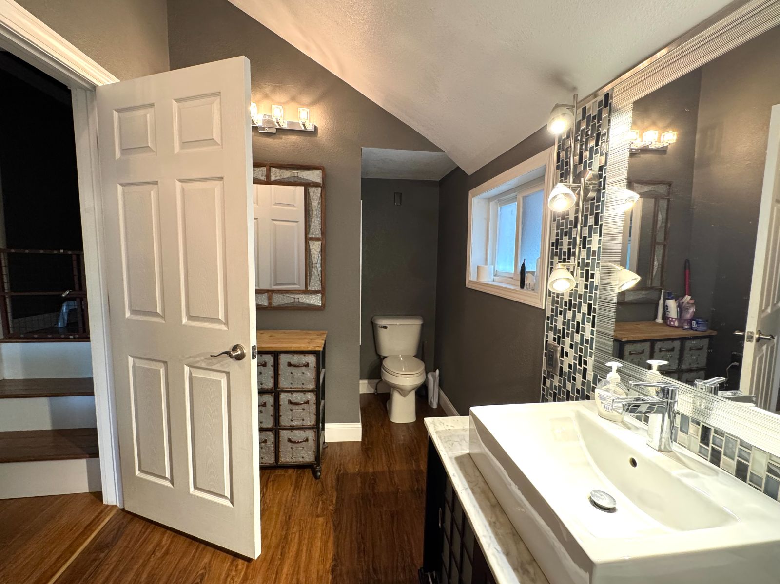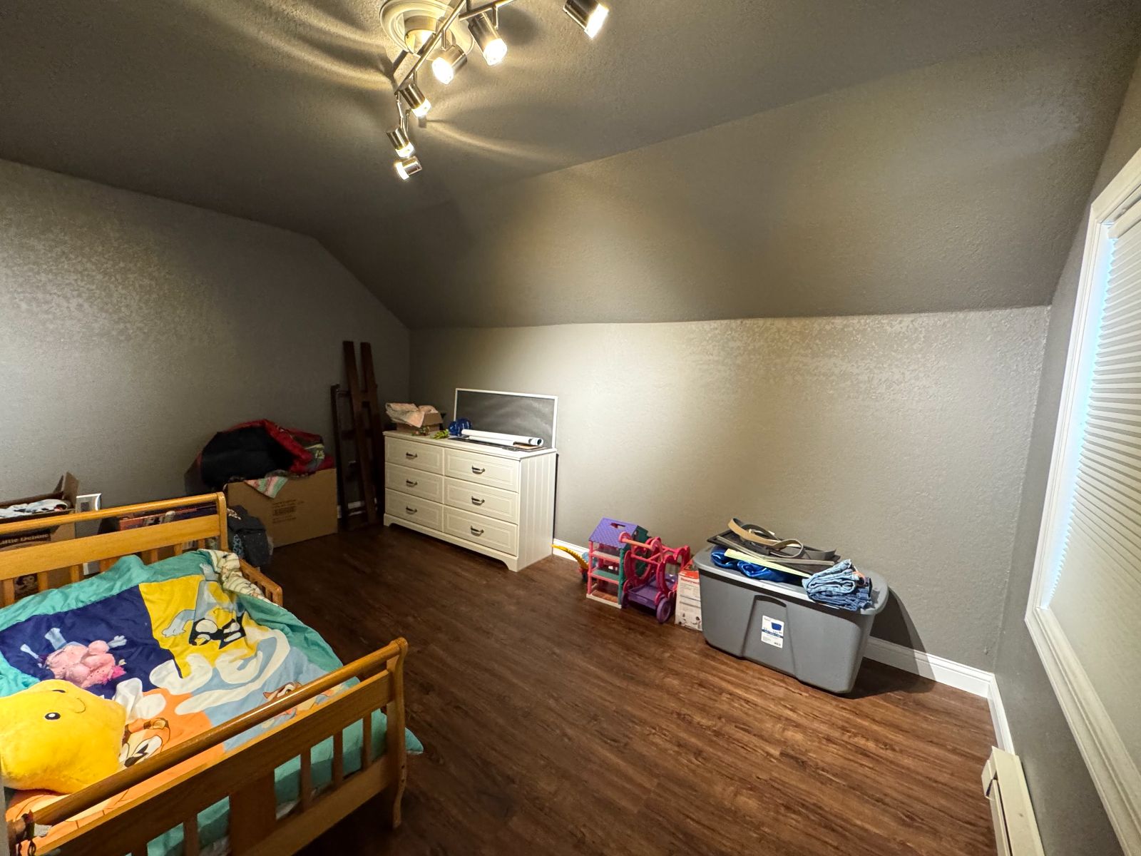 The modern interior design in this home combines style, with many thoughtful updates. A spacious Kitchen with custom cabinets with pantry. Large Granite countertop on center Island, Double Ovens (Standard/Convection), Induction Cooktop with Hood, French Door Refrigerator. The Great room has dramatic vaulted ceiling, Console electric fireplace, plenty of storage and Laundry by Kitchen! Living Room has motorized window blinds and day-lighted Entry Door. Master Bedroom is on the Main Floor. The contemporary full Bathroom has all the flair with convenience!! Clean lines continue up the stairway to two more Bedrooms and bonus room – which is utilized now as an amazing playroom!