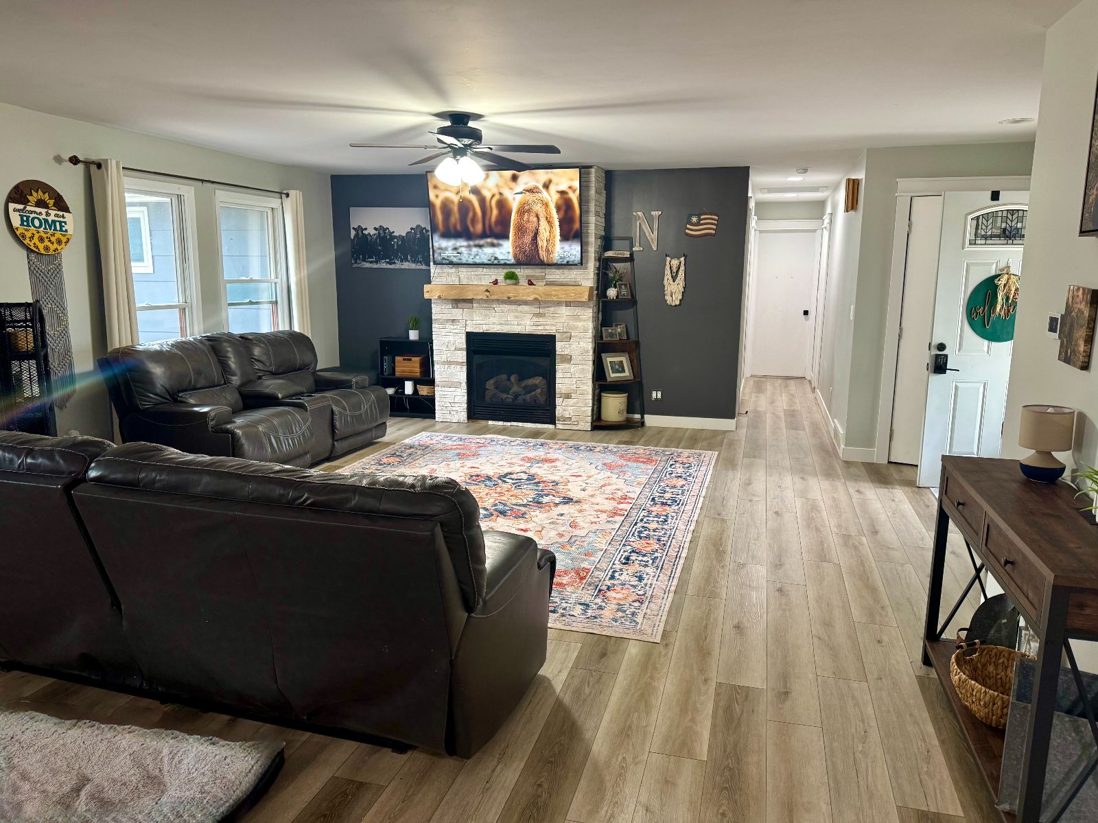 This modern home has spacious Great Room fireplace open to Kitchen and Formal dining Room. It also offers 3 bedrooms and 3 bathrooms. Master bedroom has attached en-suite with oversized double shower, oversized double vanity, and an 8×8 walk-in closet. The 2 other bedrooms provide ample room for guests or children. There is a potential 4th non conforming bedroom/office just off of the kitchen. Kitchen features a 7.5’x5.5’ kitchen island topped with Cambria quartz that has a lifetime warranty. There is room to grow into the partially finished basement. CARPET INSTALLED August, 2025!! Basement has French drain system with Sump pump. Roof and all remodeling done in spring of 2020. Outside offers nearly 3/4 of an acre of yard with the entire backyard fenced in. There is a 16×24 outbuilding in the rear as well. Roof new in 2020. New Furnace 2023. tankless water heater2024. Asphalt driveway laid in 2023. Call for your showing today
